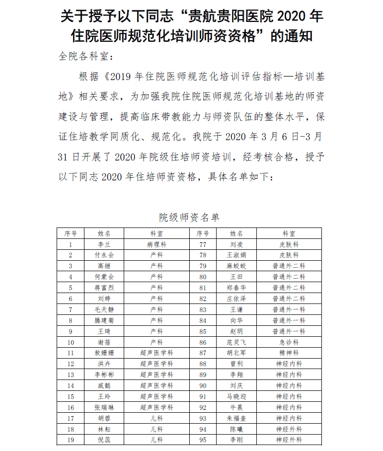 當(dāng)前位置:首頁>科學(xué)教研>住培管理關(guān)于授予以下同志“貴航貴陽醫(yī)院2020年住院醫(yī)師規(guī)范化培訓(xùn)師資資格”的通知